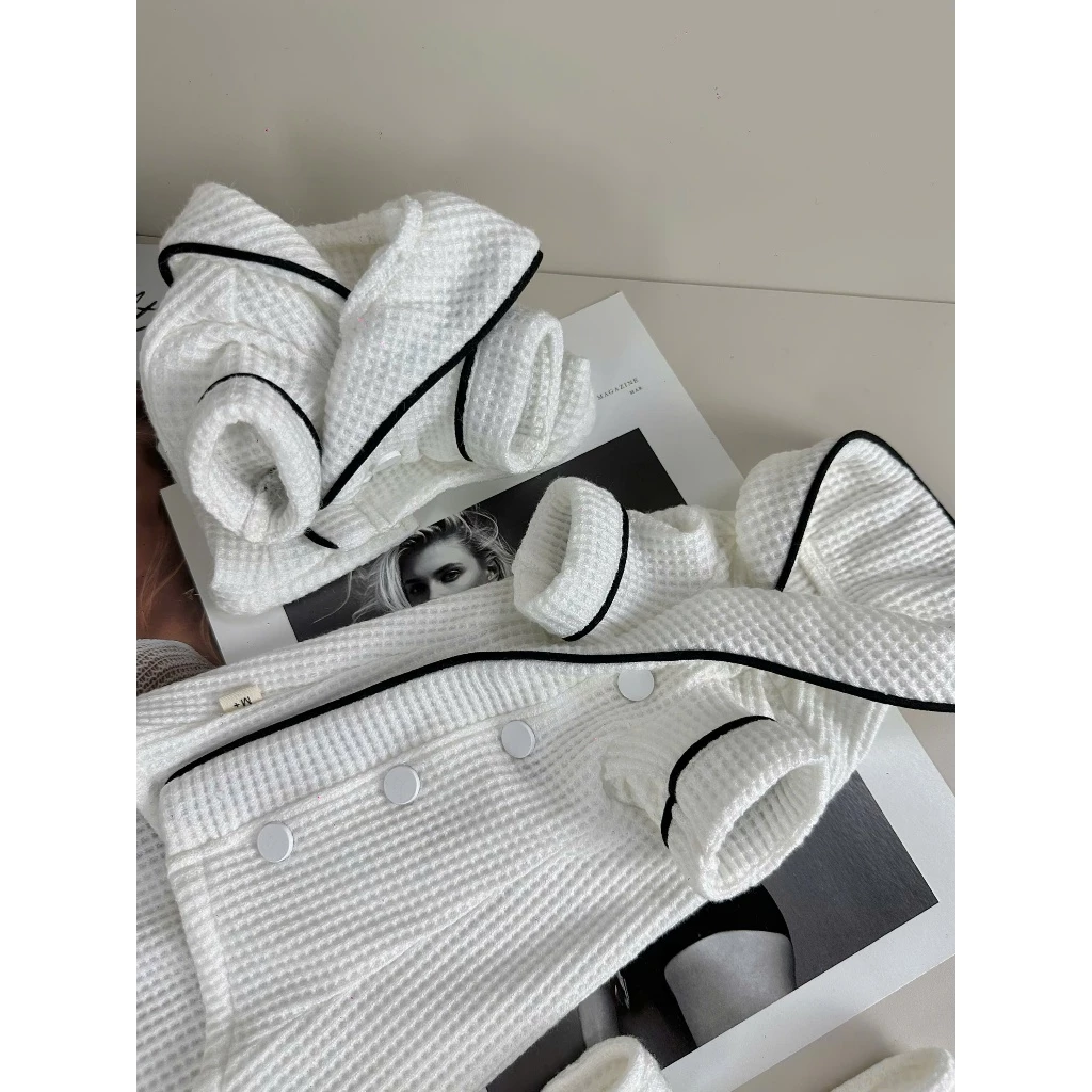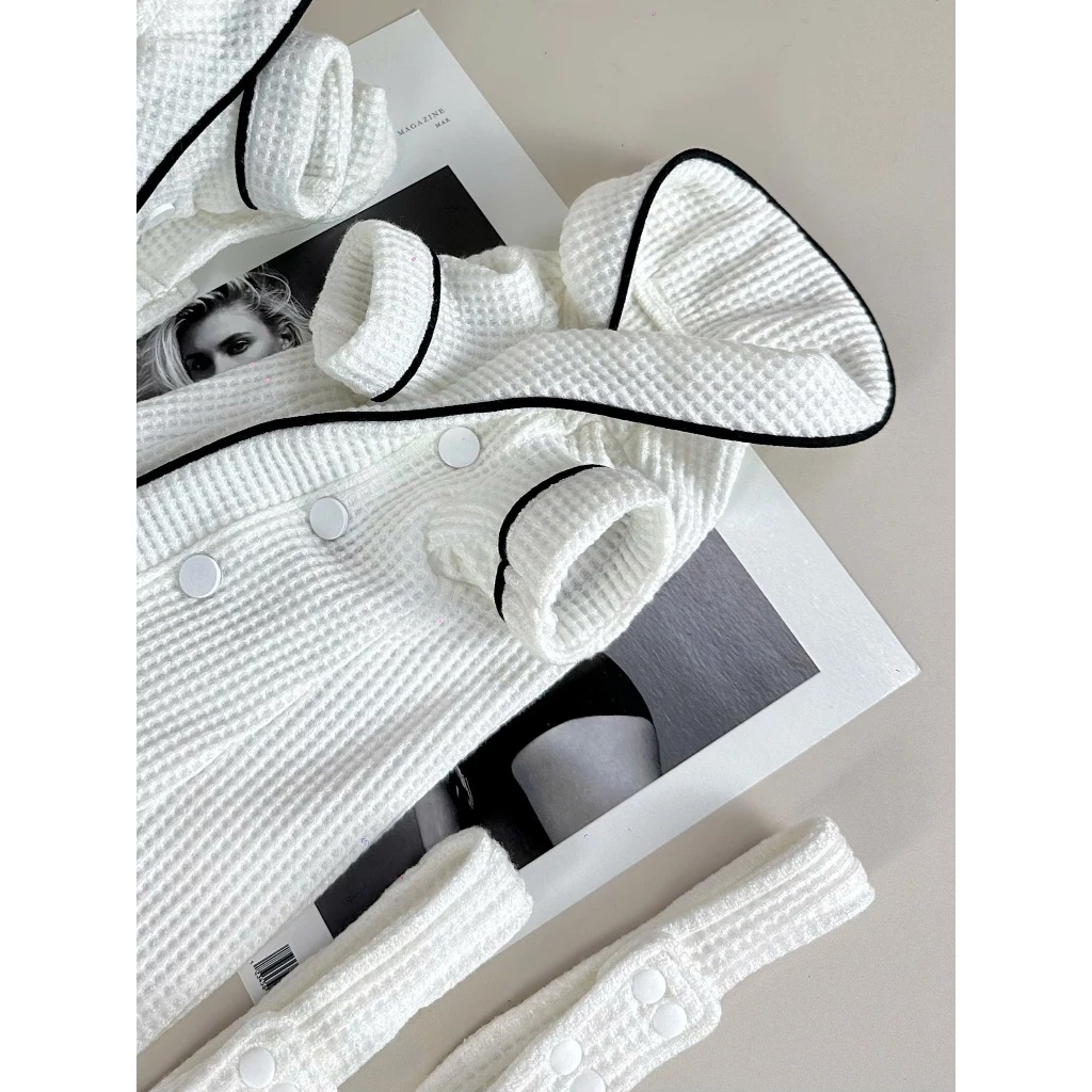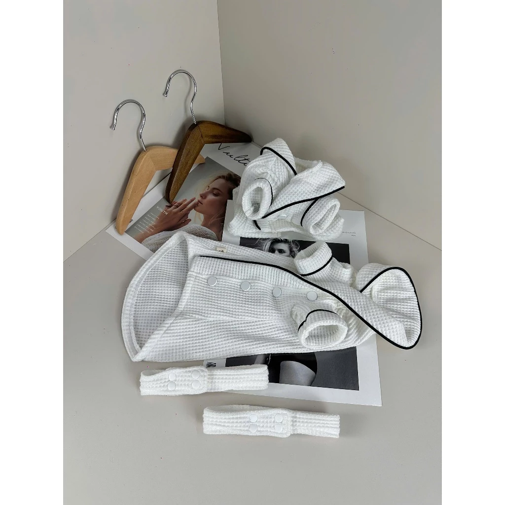 Áo choàng tắm cộc tay với thiết kế màu trắng, vải bông cotton, cúc bấm tiện lợi dễ dàng.