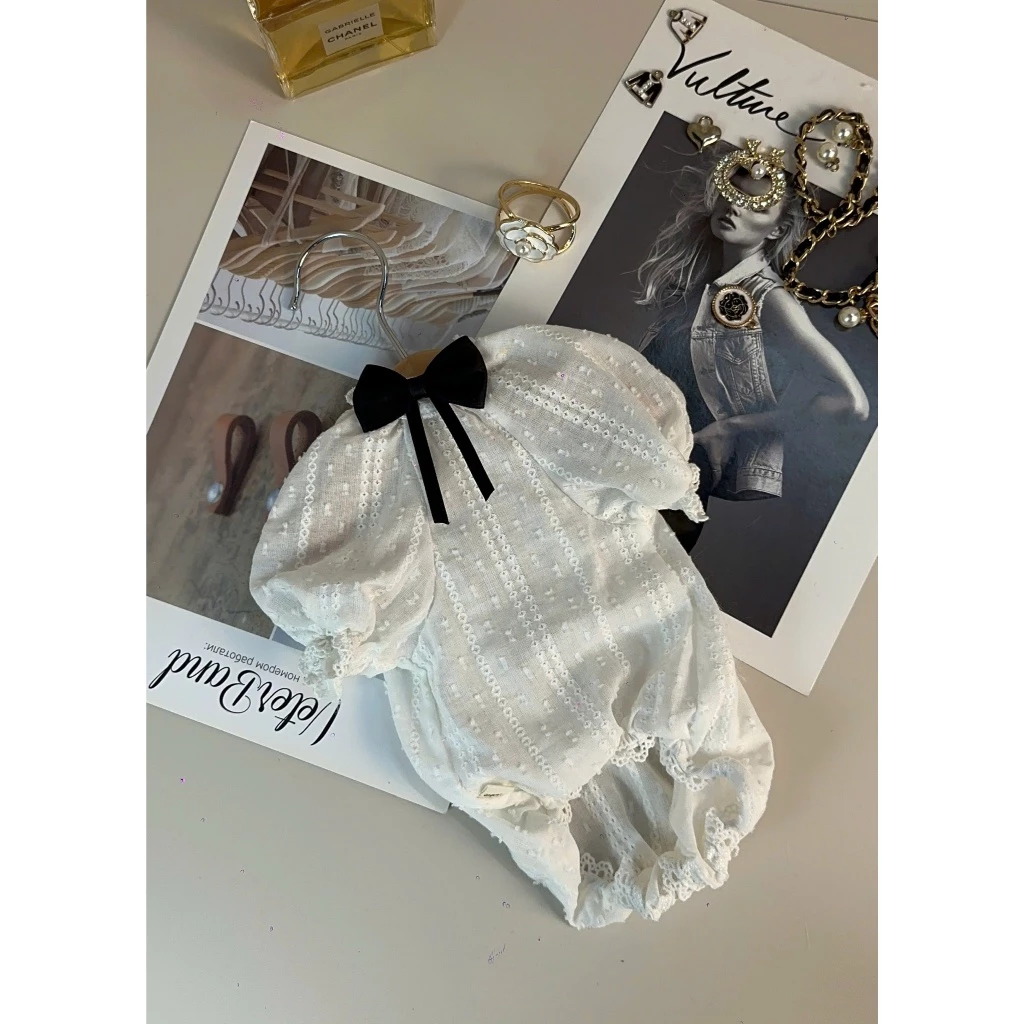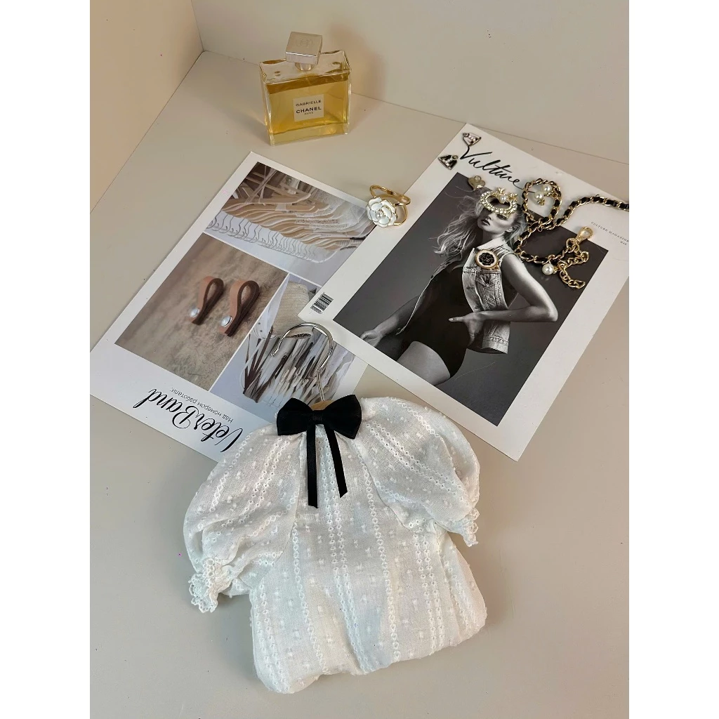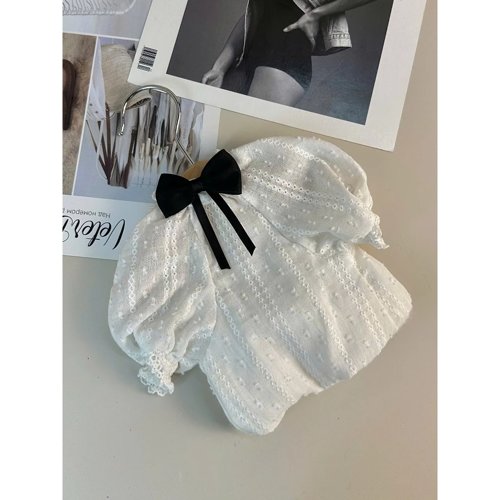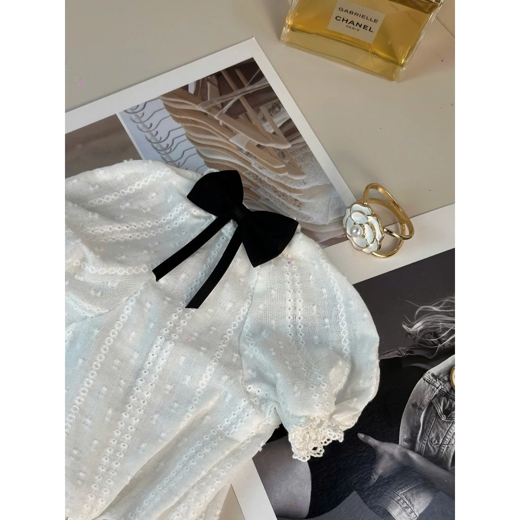 Thiết kế đáng yêu, màu trắng mang lại vẻ tươi tắn, trong sáng với điểm nhấn là chiếc nơ đen và tay nhún mềm mại ôm sát cơ thể. Chất liệu vải cotton cao cấp, thoáng khí, mang lại cảm giác thoải mái khi mặc.