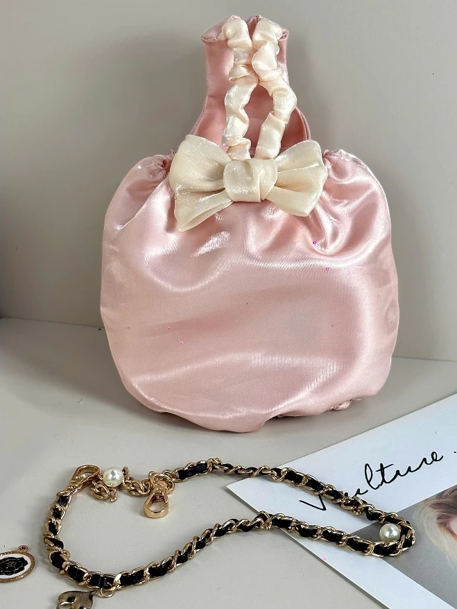 Đầm đính nơ hai dây màu hồng pastel thời trang cao cấp xinh xắn cho thú cưng