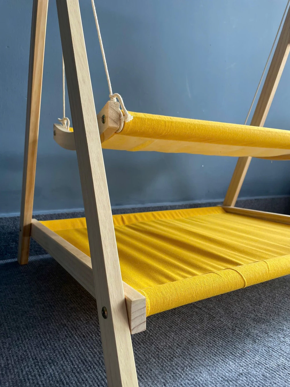 Xích đu – Giường – Võng gỗ thảm hai tầng nguyên khối cho mèo con